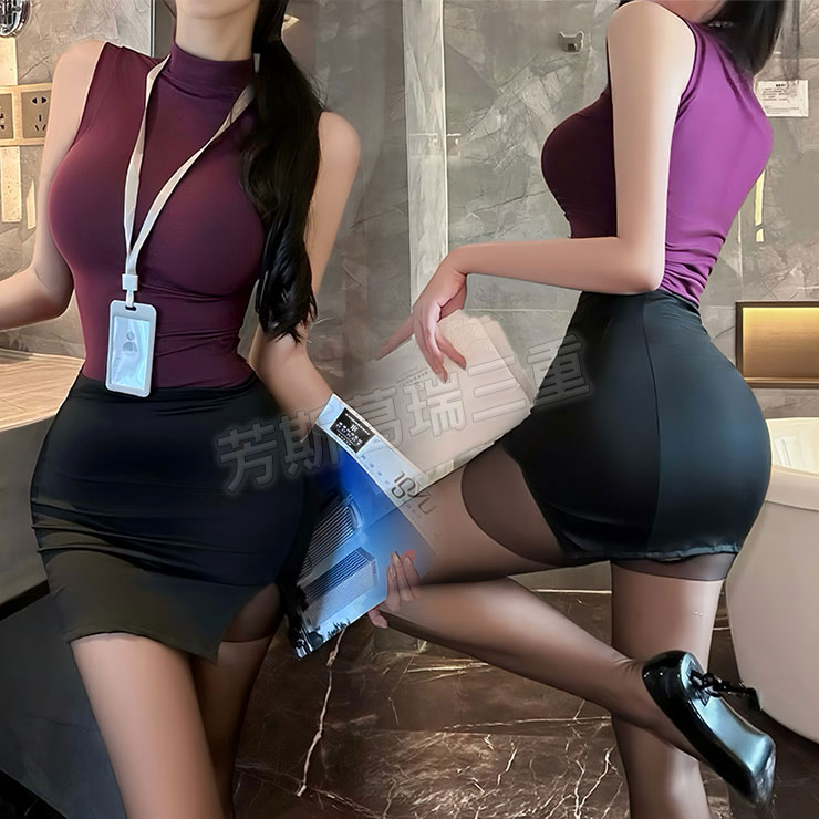 | 情趣用品名稱: 浪漫甜心 豐臀秘書裝-梅紫+黑 |