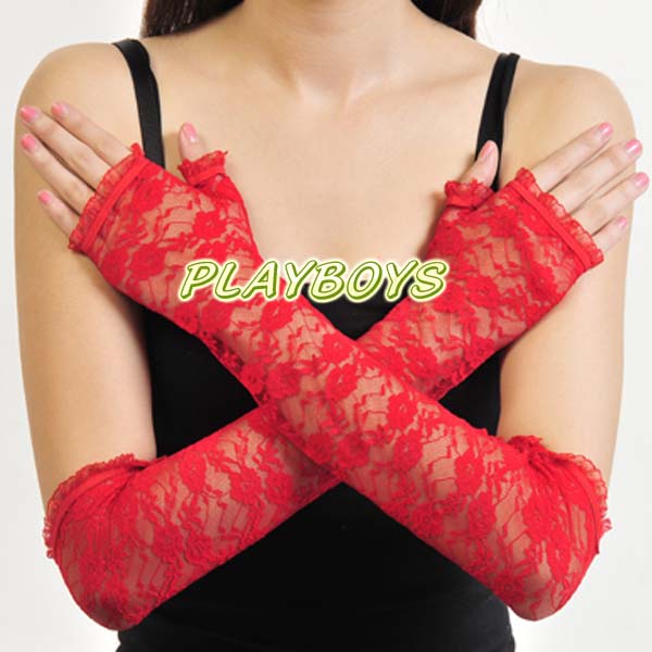 | 情趣用品名稱: 開指蕾絲花紋手套(紅)-長 |